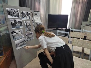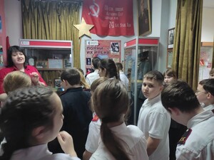 Сотрудники музея поведали о наступлении, оккупации, и об освобождении нашей станицы от фашистской нечисти. Ребятам рассказали о подвиге советских солдат, которые отбивали у врага-захватчика каждый клочок родной земли. Также школьники узнали о нелёгком труде в тылу, горечи потерь, о том, что советский народ не сломили, а укрепили боевой дух и силу воли к Победе.