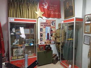 В зале представлена инсталляция, транслирующая трагедию войны, обрушившейся на жителей страны и станичников. На фоне красной стены — коллаж, показывающий войну во всём её многообразии. На многоуровневом подиуме, засыпанном гравием — осколки и гильзы от патронов и снарядов, авиационные бомбы времён ВОВ. Представлены личные вещи солдата: фляжка, каска, кружка, ложка.