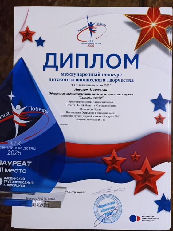 19 октября 2025г. Коллектив- Лауреат II степени в Международном конкурсе детского и юношеского творчества "КТК талантливым детям- 2025".
