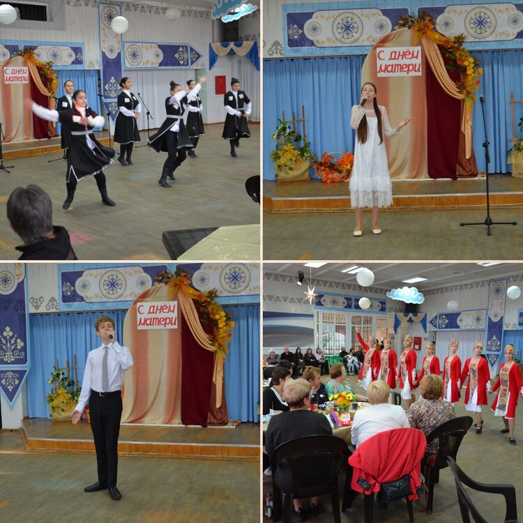 24.11.2023г. Праздничная программа "Года идут, а ты всё молодеешь", посвященная Дню матери, состоялась в клубе "Золотой возраст" в танцевальном зале Дома культуры станицы Кавказской. Завсегдатаи клуба поделились воспоминаниями о своих мамах, приняли участие в кулинарном и стихотворном конкурсах, с удовольствие слушали выступление солистов Дома культуры, попели под баян и потанцевали.