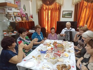 В этот раз в клубе «Золотой возраст» состоялись летние посиделки «Мы за чаем не скучаем!». Во дворике Краеведческого музея станицы Кавказской собрались активные участники клуба. С интересом прослушали видео-презентацию об истории происхождения самовара, начиная с античности и до наших дней. «На ура» встречали гостя из Кропоткина Фисун В.В., представившего на суд зрителей стихи собственного сочинения. Изюминкой встречи стало выступление хора казачьего хуторского общества «Казачка». С удовольствием потанцевали под баян, на котором известные танцевальные композиции исполнил баянист А.Г.Рыжов.