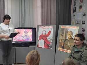📜Говоря о взаимосвязи Великой Отечественной войны и СВО: ситуация повторяется. То, что происходит сейчас, это прямая отсылка к тому, что происходило в 1941–1945 годах. Анализируя и сравнивая ВОВ и спецоперацию, сотрудники музея рассказали ребятам о работе пропаганды, которая проводилась в то время и проводится сейчас. Большую роль, как сегодня, так и 80 лет назад имеют агитационные плакаты, кинофильмы, поэзия, песни…