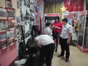 Сотрудники музея поведали о наступлении, оккупации, и об освобождении нашей станицы от фашистской нечисти. Ребятам рассказали о подвиге советских солдат, которые отбивали у врага-захватчика каждый клочок родной земли. Также школьники узнали о нелёгком труде в тылу, горечи потерь, о том, что советский народ не сломили, а укрепили боевой дух и силу воли к Победе.
