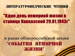 Литературоведческие чтения «Один день немирной жизни в станице Кавказской 29.01.1943 года» Подробнее о Литературоведческие чтения «Один день немирной жизни в станице Кавказской 29.01.1943 года»
