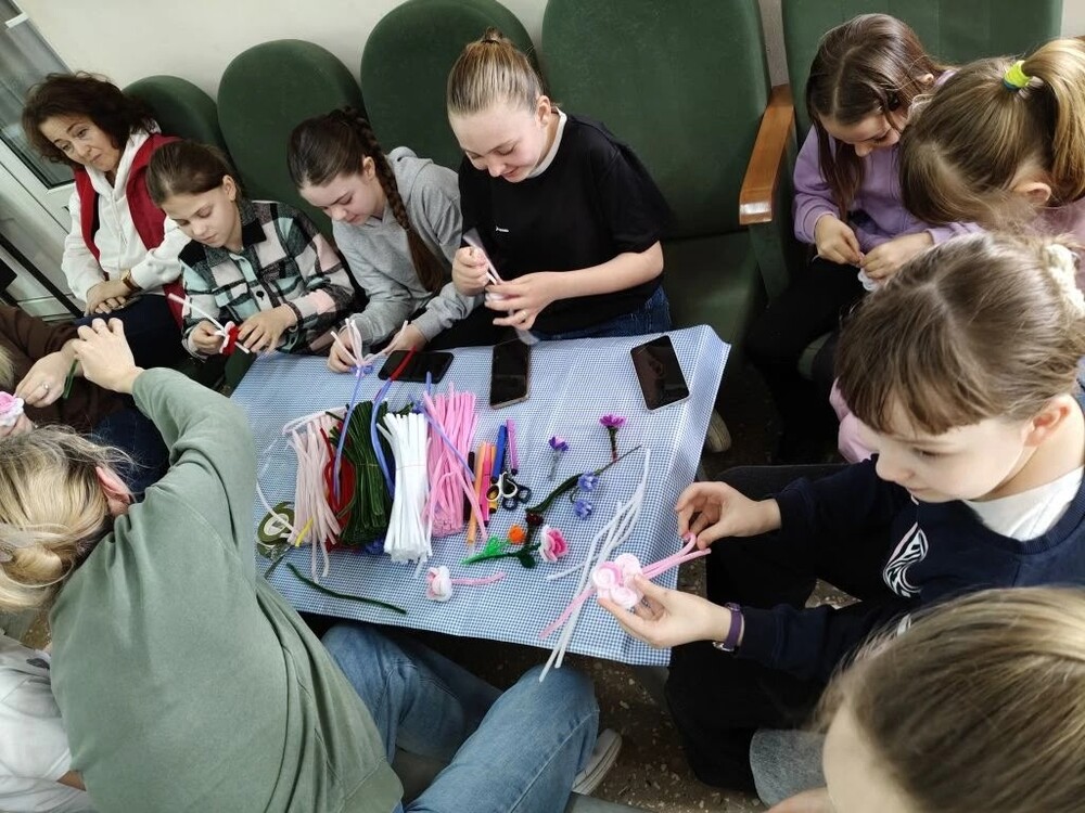 Детей и их родителей учили создавать оригинальные цветы из синельной проволоки. Это увлекательный процесс, который развивает мелкую моторику и фантазию. Результат превзошел все ожидания — нежные, фактурные цветы получились у каждого участника!